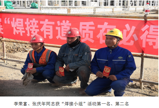 活動共分4個小組進(jìn)行,分別為競答小組、樣板小組、砌筑小組、焊接小組。我單位積極響應(yīng)業(yè)主質(zhì)量月號召,分別參加了競答小組、焊接小組競賽活動?;顒咏Y(jié)束后,項(xiàng)目部參加人員取得了驕人的成績:于乘淼、魏自強(qiáng)同志參加的競答小組喜獲第一名,李榮富、張慶年同志分別獲得焊接小組比賽的第一名、第二名,為公司爭光添彩,彰顯了公司在安裝技術(shù)方面的實(shí)力。