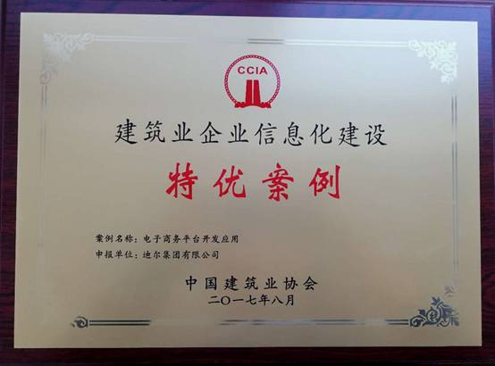 我公司申報的《電子商務(wù)平臺開發(fā)應(yīng)用》在第三屆建筑業(yè)企業(yè)信息化建設(shè)案例征集活動中被評為“建筑業(yè)企業(yè)信息化建設(shè)特優(yōu)案例”。