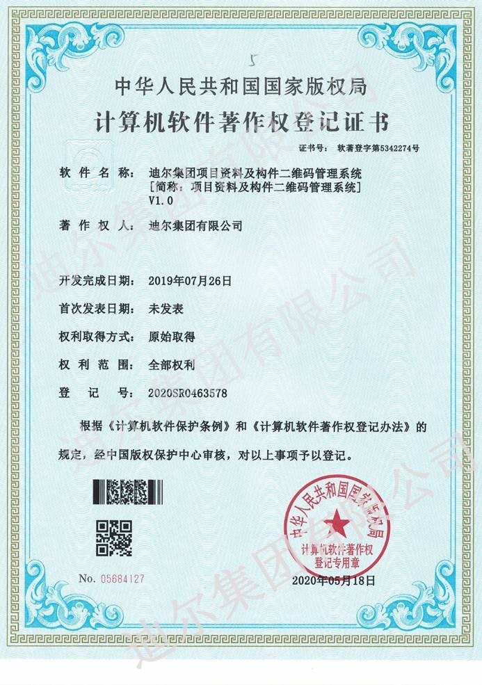 2020年5月23日,公司自主設(shè)計(jì)開發(fā)并實(shí)施應(yīng)用的五個(gè)信息化管理系統(tǒng):綜合數(shù)據(jù)分析平臺、勞務(wù)實(shí)名制管理系統(tǒng)、質(zhì)量安全隱患排查管理系統(tǒng)、電子商務(wù)物資集采平臺、項(xiàng)目資料及構(gòu)件二維碼管理系統(tǒng),均獲得國家版權(quán)局計(jì)算機(jī)軟件著作權(quán)。