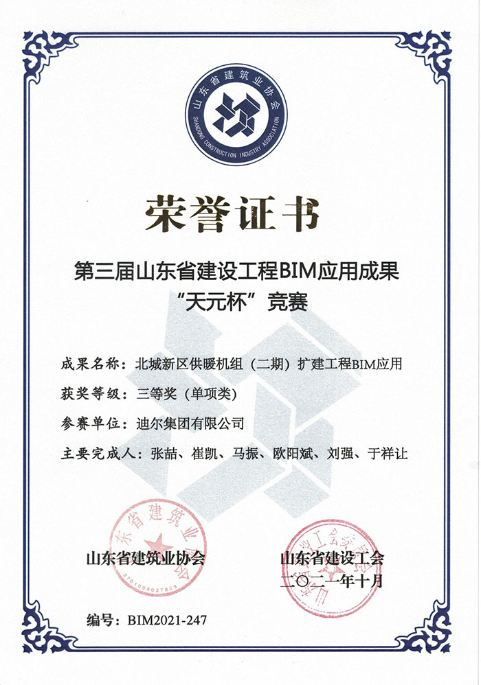 第三屆山東省建設工程BIM應用成果“天元杯”競賽結果揭曉,迪爾集團獲得優(yōu)異成績