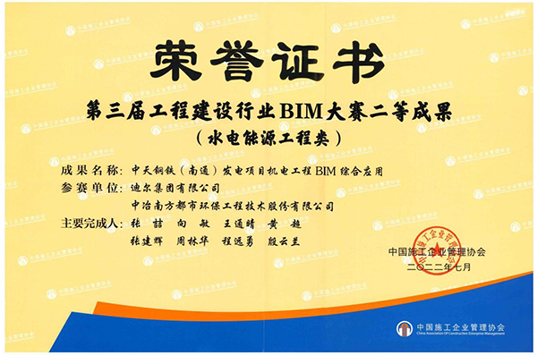 近日,公司申報的“中天鋼鐵(南通)發(fā)電項目機電工程BIM綜合應用“榮獲第三屆工程建設行業(yè)BIM大賽二等獎,這是公司首次在中國施工企業(yè)管理協(xié)會工程建設行業(yè)BIM大賽拿獎,填補了公司在該項賽事上的空白,展示了公司在BIM領域的技術實力,對推動培養(yǎng)公司技能人才具有十分重要的意義。