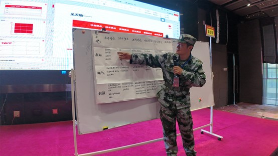 接下來(lái),王克導(dǎo)師結(jié)合分析知名企業(yè)成功案例,提綱挈領(lǐng),拋磚引玉,對(duì)學(xué)員們的認(rèn)知、心智以開悟啟迪,各個(gè)連隊(duì)針對(duì)研討營(yíng)提出的“形勢(shì)研判”“價(jià)值定位”“業(yè)務(wù)鋪排”“模式設(shè)計(jì)”“系統(tǒng)行動(dòng)”“資能配置”“企業(yè)管控”等七大課題通過研討集思廣益,用心作業(yè),然后形成報(bào)告,進(jìn)行展示,以豐富多彩的形式展開競(jìng)賽。每位學(xué)員在研討中不再墨守成規(guī)、因循守舊,而是放開思路、創(chuàng)新思維,不斷突破自我認(rèn)知邊界,用全新的視角去看待問題,解決問題,同時(shí)與隊(duì)友密切配合、相互補(bǔ)充,最終依靠團(tuán)隊(duì)的力量,攻克一個(gè)接一個(gè)看似艱巨的課題。每一次研討都是一次思想碰撞,每一次碰撞都伴隨著一次思維重構(gòu)。尤其在文化活動(dòng)——“鷹王重生”環(huán)節(jié),面對(duì)看似不可能完成的任務(wù),大家一次次克服畏難情緒,經(jīng)受住信念、毅力和體能的多重考驗(yàn),即使累得滿頭大汗、胳膊疼麻,也咬牙堅(jiān)持,自我鼓勁,不言放棄,可謂經(jīng)歷了一場(chǎng)身心的洗禮與覺醒。面臨生死抉擇,選擇生,就必須拋舊納新,自我蛻變,經(jīng)歷疼痛;企業(yè)重構(gòu)建歸根結(jié)底始于人的重構(gòu)建,始于個(gè)人的自我打破和蛻變;蛻變是艱難而痛苦的,但只有經(jīng)過蛻變的陣痛,個(gè)人、團(tuán)隊(duì)乃至企業(yè)才能獲得重生。