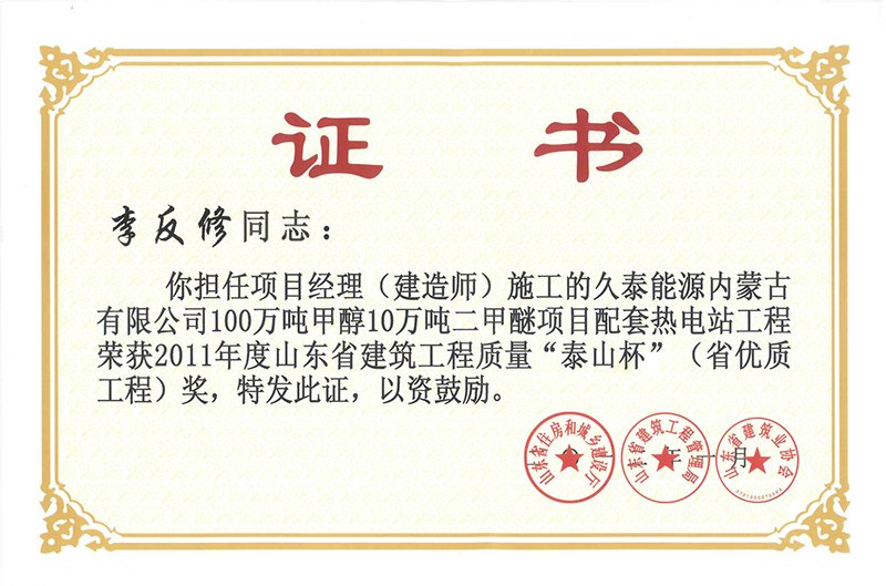 Certificate of honor
