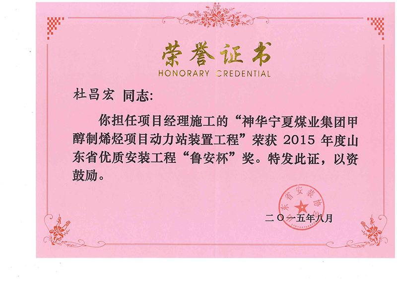 Certificate of honor