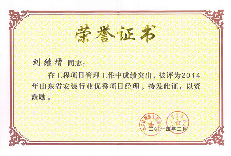 Certificate of honor