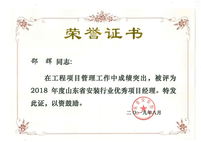 Certificate of honor